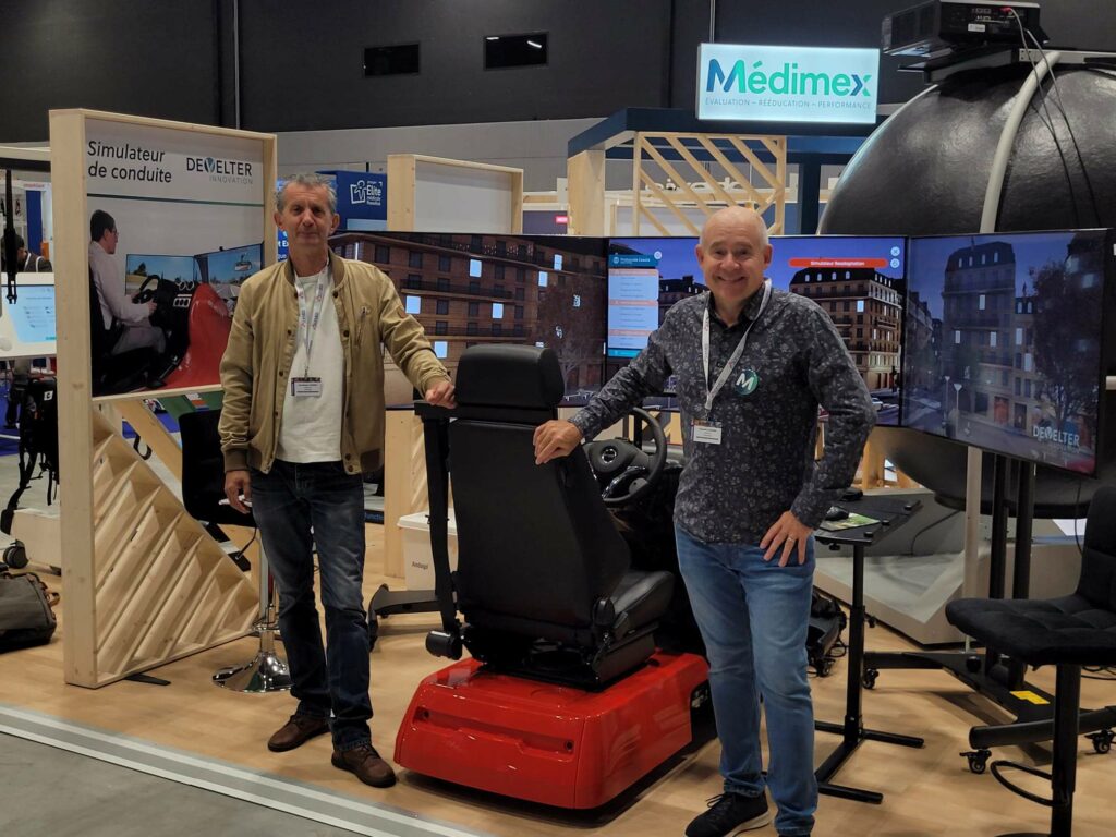 Pour cette édition 2025, Develter Innovation était présent aux côtés de son partenaire MEDIMEX sur le plus grand stand du salon. Une vitrine privilégiée pour mettre en valeur notre savoir-faire dans la simulation appliquée à la rééducation et à la conduite.
